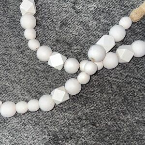 Distressed White Wood Beaded Jute Twine With Tassels Garland Decor NEW
