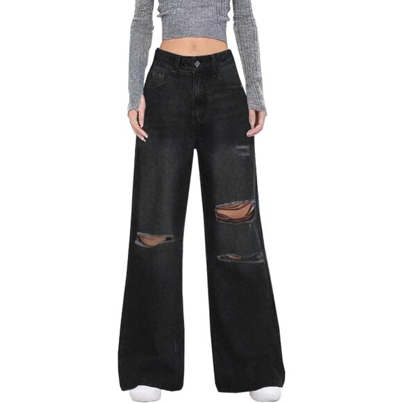 Distressed Wide Leg Jeans — A perfect mix of edgy and casual with a 90s vibe.
