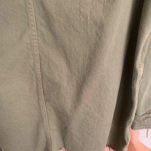 Distressed with frayed hem. In perfect shape. Did not wear more than twice.