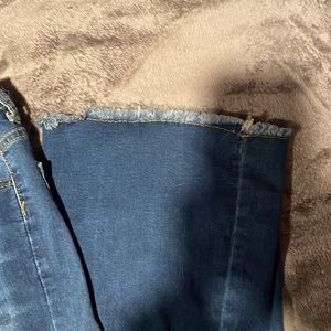 Distressed bell bottoms with high rise waist and zipper buttons very stretchy