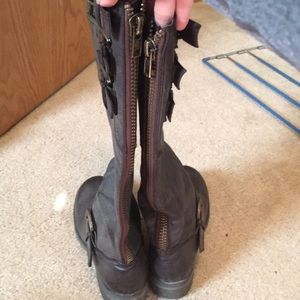Tall boots with buckle detail and fill zipper with a distressed brown/grey color. Like-new condition!