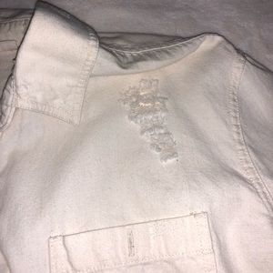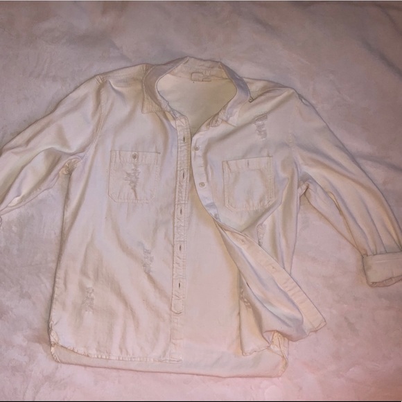 Distressed cream/pale yellow button down. Perfect with a pair of jeans or as a coverup! Smoke free home. Make me an offer!