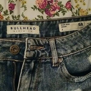 Size 3 distressed jean shorts from Pac Sun. Super cute. Never worn, without tags. I just had a baby and my hips will never fit in these again!