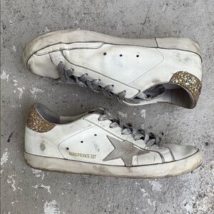 Please look at the pictures. These are distressed, golden goose as I show in pictures.