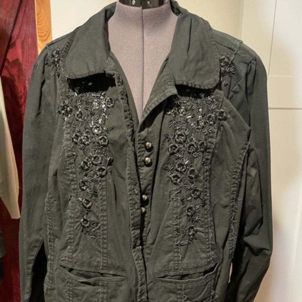 Black distressed embellished Jacket From Venezia Size 26/28 97% Cotton 3% Spandex Good Condition