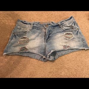 Distressed jean shorts