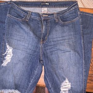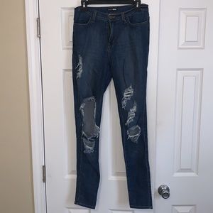 Distressed Fashion nova jeans, worn once. In perfect condition. Size 9 (w28) outseam 42, inseam 31.5