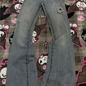 28” waist and 37 length. Only flaw is the pockets are ripped so they’ll be no pockets in the front.