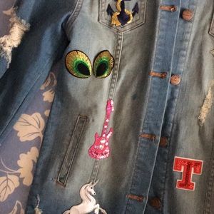 Distressed patch denim jacket