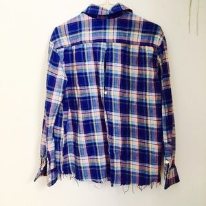 Distressed plaid bottom down from Akira. Back is split. Super fun and trendy. Colors look a little different because of lighting
