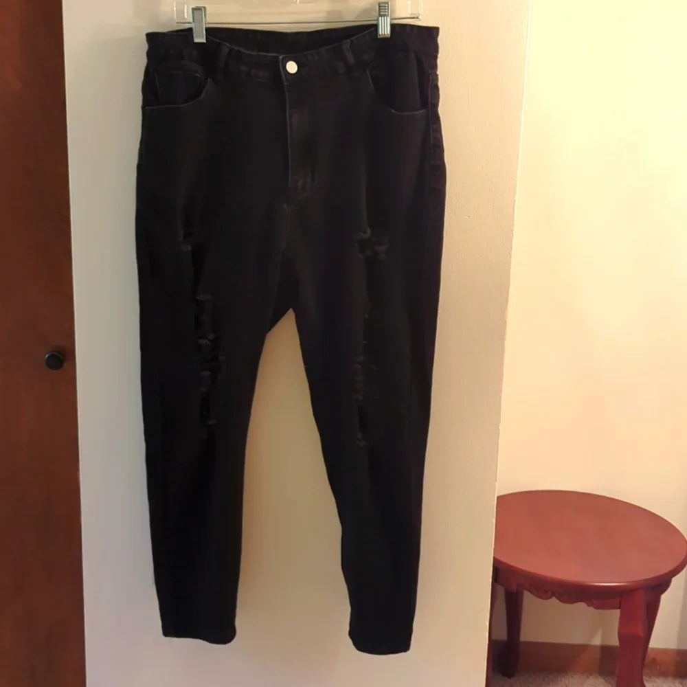 Shein curve size 2xl fits like a size 16. stretchy distressed denim jeans with 26in inseam