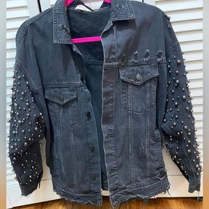 This black distressed denim jacket is gorgeous and unique. Bought it at Bloomingdale’s and worn twice. Exclusive to Bloomingdale’s and it is no longer sold in stores. In excellent condition.