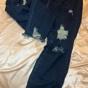 Stylish distressed jeans in a classic blue shade. Perfect for a casual, trendy look.