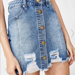 Ladies super cute acid wash distressed denim button down Skirt. New with tags. Ladies sizes small-Large