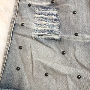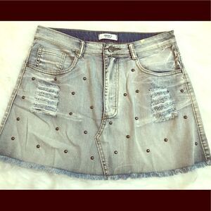 Ladies super cute high waisted distressed denim studded skirt. Excellent condition. Ladies size 28.