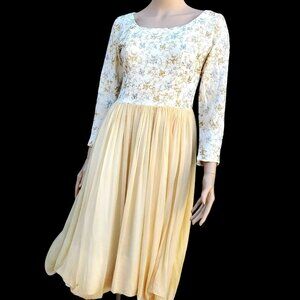 Distresseed 1950s Vintage Saks Fifth Avenue Silk Chiffon Evening Dress S Stains