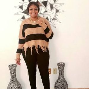 Add a little edge to your new-season wardrobe with this jumper doll. Featuring a green knit material with a fringe hem and a cropped fit, team this with jeans and boots for a look we're loving.