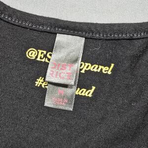 District ESEF Apparel Black Tank Top Gold Glittery Tribe Graphic Print Classic Racerback Scoop Neck Women's Size M Lightweight Sleeveless Shirt