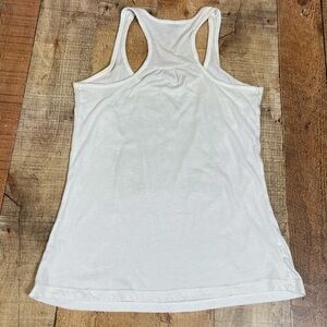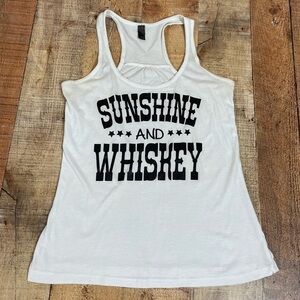 District Made Sunshine and Whiskey cream tank top. Has a small dot on back shown in close up photo.