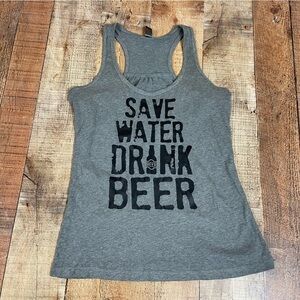 District Made Save Water Drink Beer grey tank top. In excellent condition!