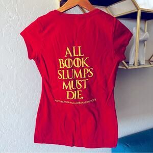 District Poland Bananas Books House Bookslayer Slumps tee shirt womens size S