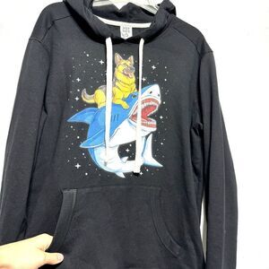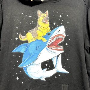 District Sweatshirt German Shepherd Shark Dog Pullover Hoodie Black sz Large