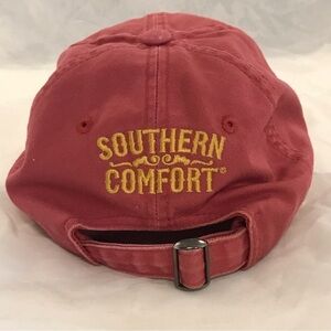 E1 Hat/Cap District Threads Vintage Adult Adjustable Strap with Buckle "SC 1874" type and logo in gold on sideface and Southern Comfort type in gold on rear/brownish orange. Southern Comfort (often abbreviated SoCo) is an American, naturally fruit-flavored, whiskey liqueur with fruit and spice accents. The brand was created by bartender Martin Wilkes Heron in New Orleans in 1874, using whiskey as the base spirit. 100% Cotton