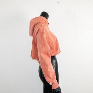 District Vision Raw Cropped Fleece Hoodie Pink dye size Small
