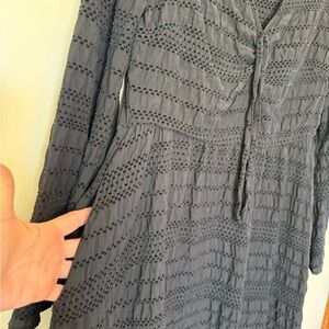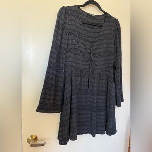 Disturbia black long bell sleeve v-neck mini dress. Nonfunctional tie at bust. Side zipper. Pockets. Fully lined. Incredibly soft material. Great condition.