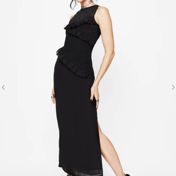Disturbia Dress Women US 6 UK 10 Black Reflections Black Frill Detail Sleeveless