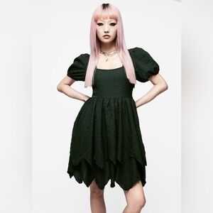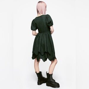 - Green textured mini dress with layered skirt