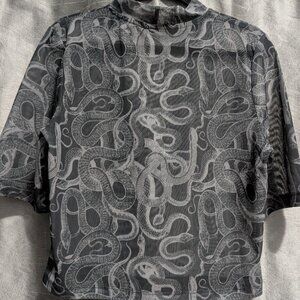 Disturbia Serpente Print Mesh Short Sleeve Crop Top