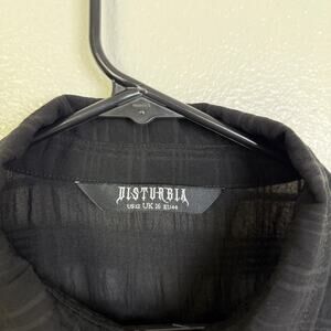 Disturbia Shirt Womens Size 12 Black Check Long Sleeve Button Up Sheer Puff