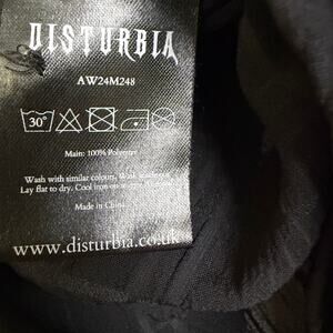 This listing is for a Disturbia Women's Recluse Check Chiffon Shirt. Black. Puff sleeve. Button Up. Polyester.