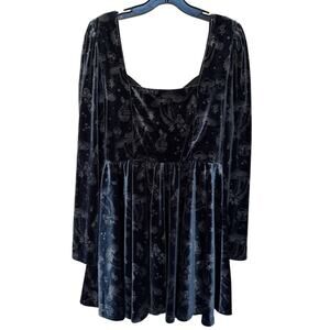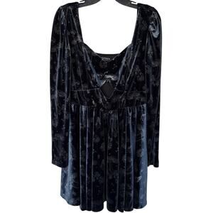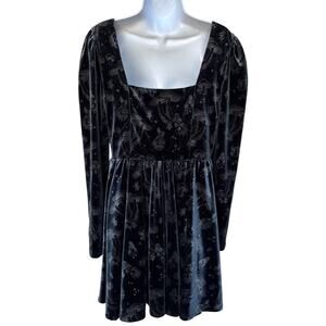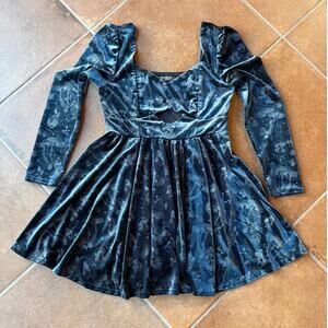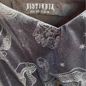 Disturbia Velour Puff Sleeve Dark Fairy Goth Mini Dress w Mushrooms Cut-Out sz 8