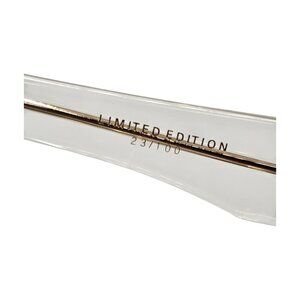 Stylish Dita Kanata sunglasses with a unique design. Features a clear frame with gold accents and gradient lenses.