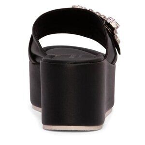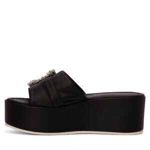 Dita is a medium-height platform leather sandal. This supple leather slide-in is embellished with a rhinestone-covered buckle, features a padded insole for comfort and has a non-marking white outsole.