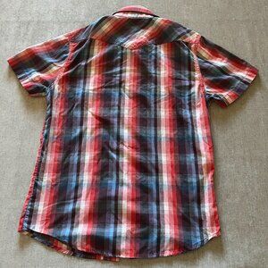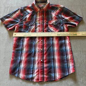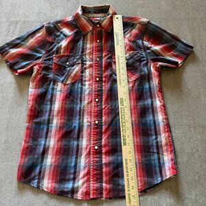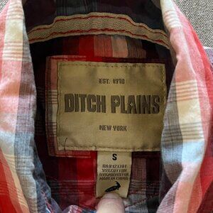 Ditch Plains NY Men Shirt Men S Red Blue Plaid Short Sleeve Button Up Cotton