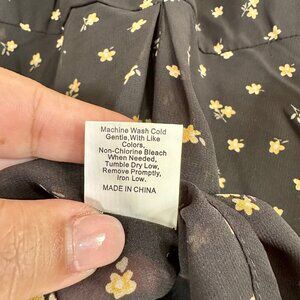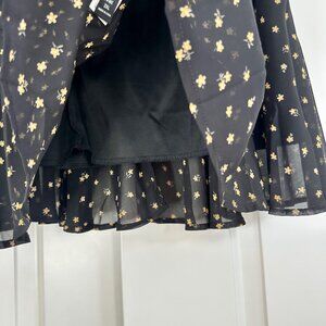 Ditsy Floral Black and Yellow Ruffle Hem Mini Skirt 2XL