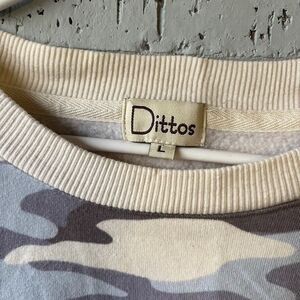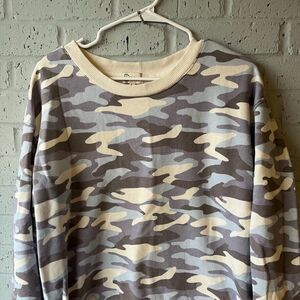 Dittos Sweatshirt Womens Soft Comfy Large Blue Beige Camo Pullover Camouflage