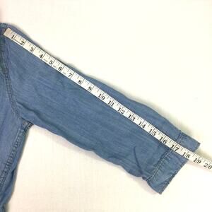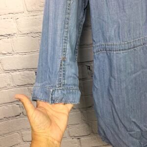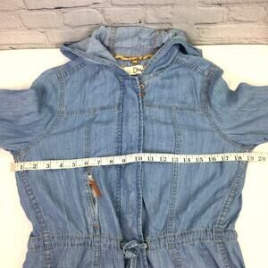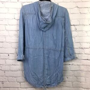 Dittos Women's Chambray Flap Pocket Drawstring Tie Waist Hooded 3/4 Lightweight Zippered Jacket M