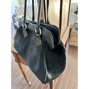 Elevate your style with this stunning medium-sized vintage shoulder bag by Dittrich Furs out of Detroit. The exterior is crafted with luxurious black fur, not sure of the type, complemented by silver hardware accents. The zip closure ensures your belongings stay safely inside, while the bottom studs protect the bag from wear and tear. The bag features a spacious interior with a lined inner pocket to keep your essentials organized. This authentic designer bag is a must-have for any fashion-forward woman. A Lloyd high heeled silver keychain was added for pull.
