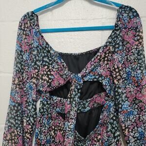 A cute tie back floral ruffle dress by Rewind in size medium.