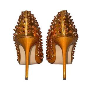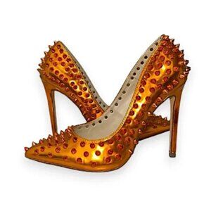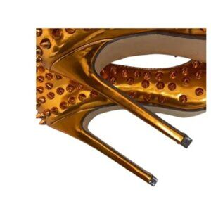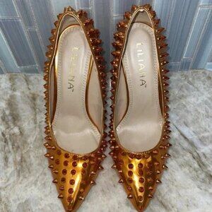 Offered is this great pair of LILIANA riveted spike metallic orange heels with 5" heel.