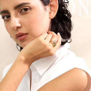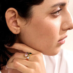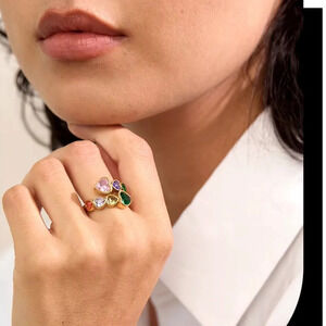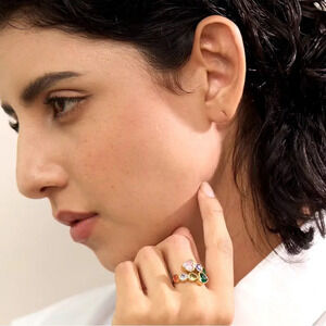 Diva Multicolor Crystal Heart 18K Gold Stainless Steel Waterproof Ring