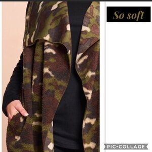 Diva Plus Camouflage Fleece Vest. Vest stops lower hips, has pockets & versatile collar. Cute!