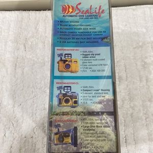 Planning a wonderful trip to the ocean. Wonderful brand new boxed automatic dive camera Reef Master RC SL515. Easy click to take pictures. Rugged slip proof rubber armor. 3 element multi-coated glass lens. Up to 163 ft. Color corrected U/W flash. This can be used on land sea