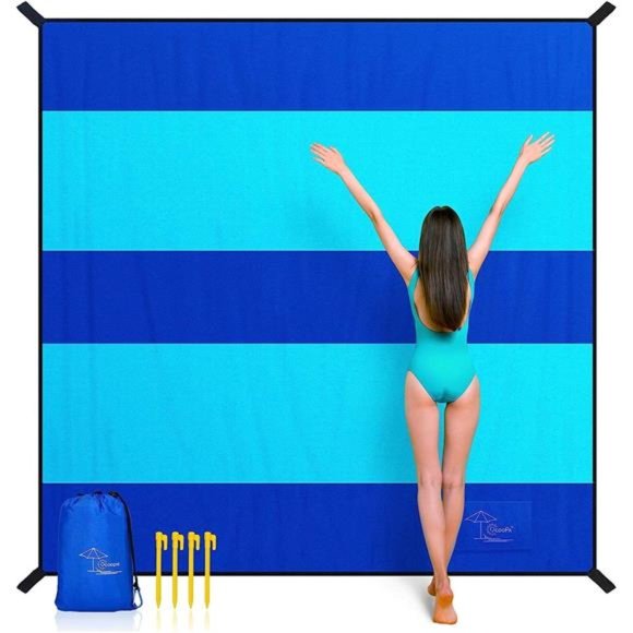 🧿Comfortable and Compact] We can fit up to 6–8 people comfortably on our huge beach blanket, which measures 10 feet by 9.2 feet. It's also ultra-compact it folds up very compactly when placed in the carry case, saving you room when you pack for your beach vacation.