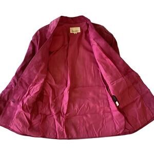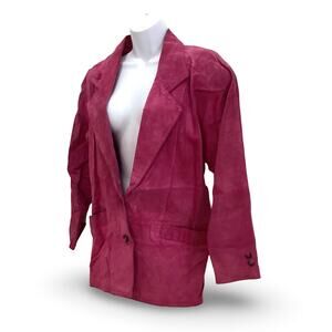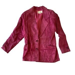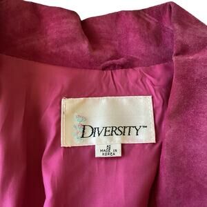 Raspberry colored suede leather jacket by Diversity in good preowned condition. No flaws.