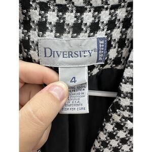 Diversity Womens Blazer Size Petite 4 Houndstooth Black White Single Button Up